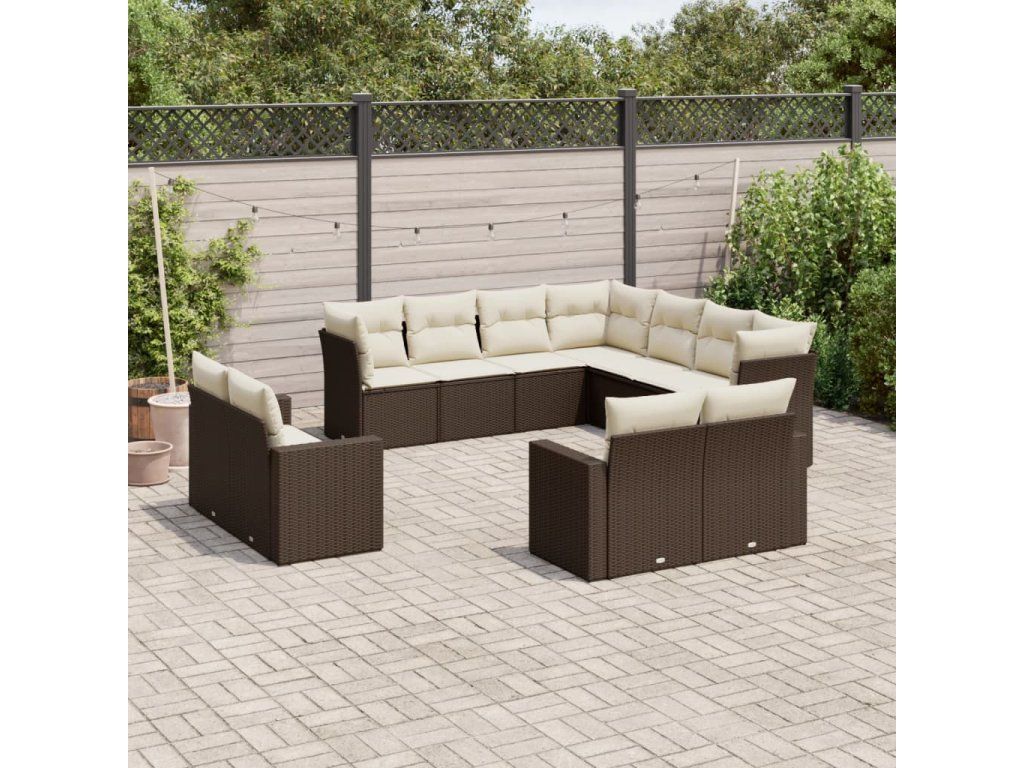 11dílný zahradní sedací souprava s poduškami hnědý polyratan 3219123