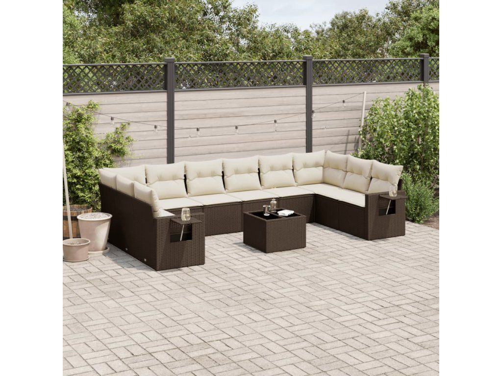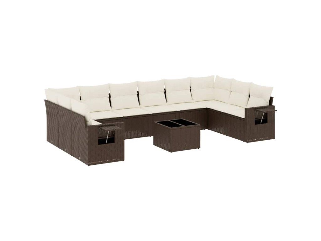 11dílný zahradní sedací souprava s poduškami hnědý polyratan 3220682