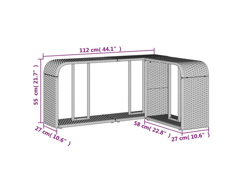 - Rozměry (L): 112 x 27 x 55 cm (D x Š x V)