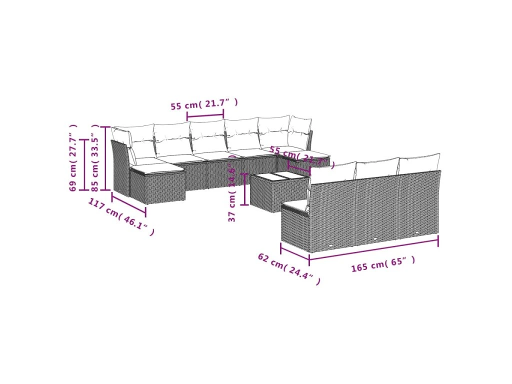 Tato zahradní sedací souprava je dokonalým doplňkem vaší zahrady, terasy nebo dvorku a poskytne vám pohodlné a příjemné místo, kde si můžete povídat s rodinou a přáteli nebo jen tak odpočívat a užívat si pobyt venku.
