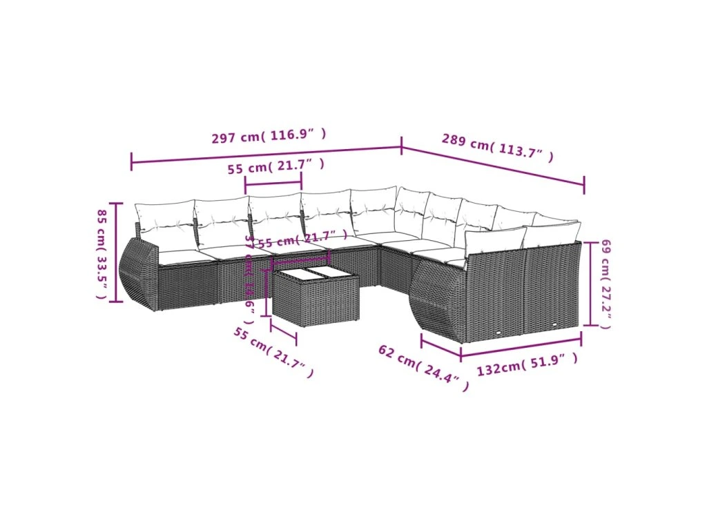 11dílný zahradní sedací souprava s poduškami hnědý polyratan 3254260