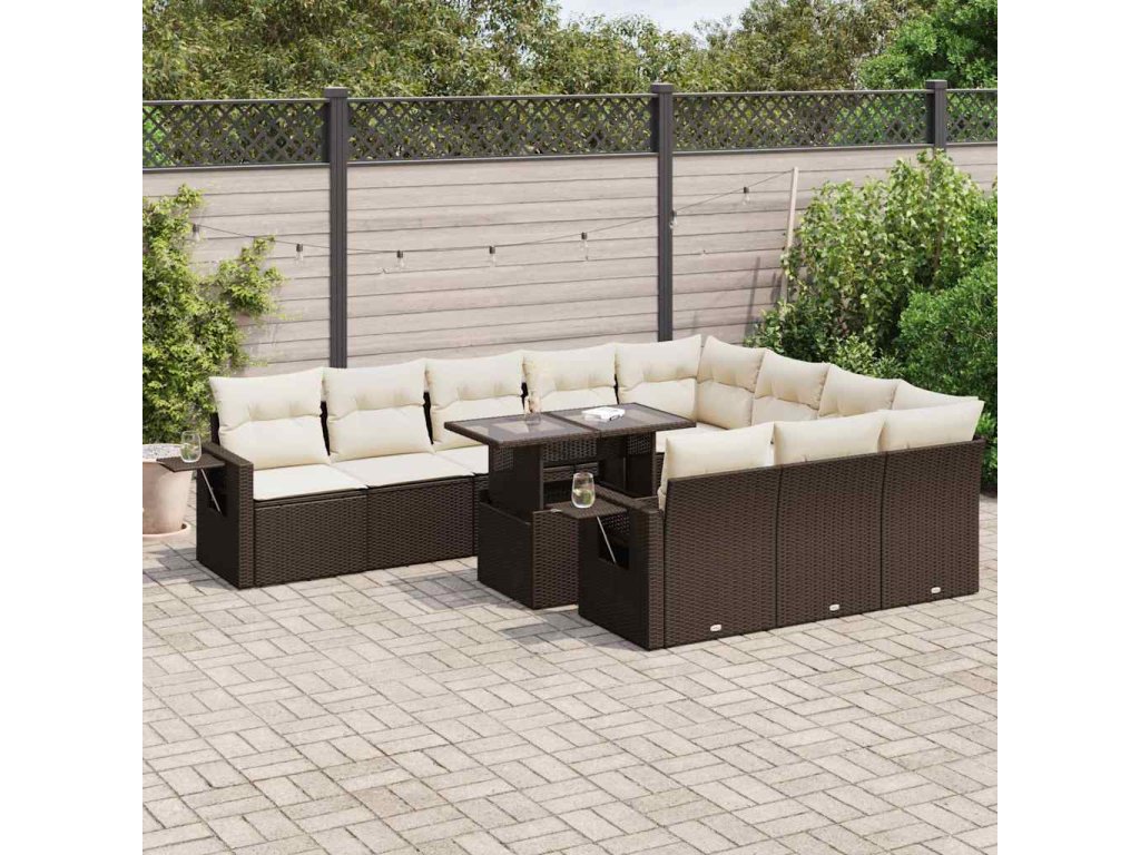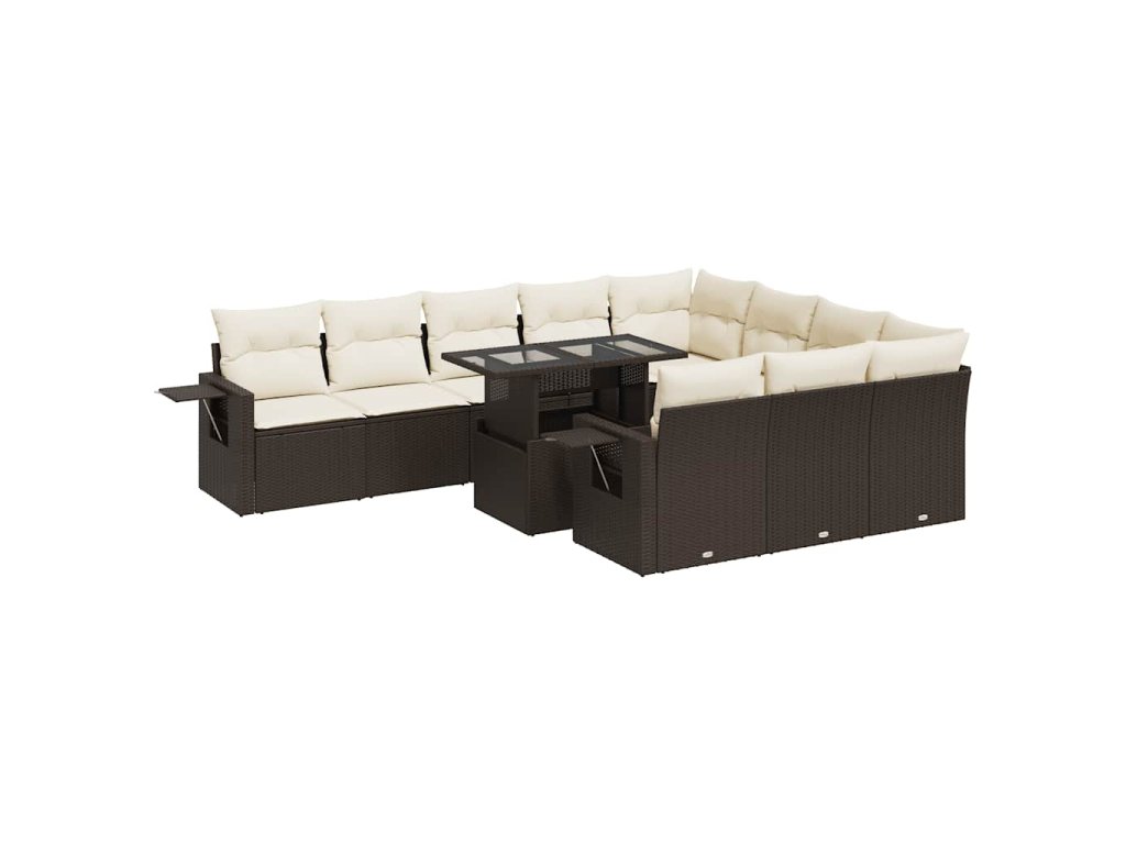 11dílný zahradní sedací souprava s poduškami hnědý polyratan 3326554