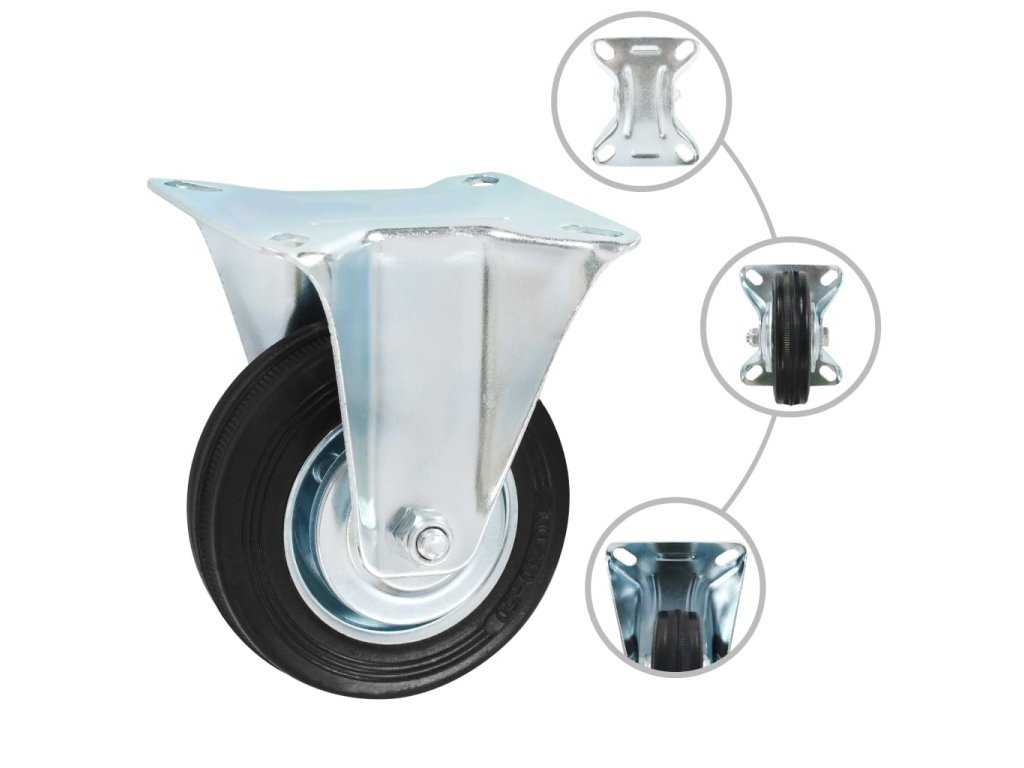 Kolečka jsou vyrobena z gumy, která je známá pro svou schopnost pohlcovat nárazy a vibrace. Ať už tedy kolečka namontujete na cokoliv, budete to moci přesouvat hladce a v tichosti. Jejich hladký povrch navíc ochrání vaši podlahu před poškrábáním. Zinkem potažený ocelový rám je odolný proti rzi, dodává kolečkům na odolnosti a prodlužuje jejich životnost. Každé kolečko má maximální nosnost až 70 kg.