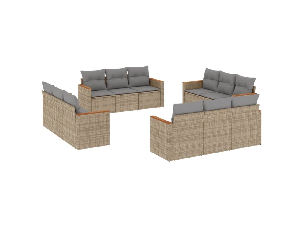 12dílná zahradní sedací souprava a podušky mix béžové polyratan 3225835