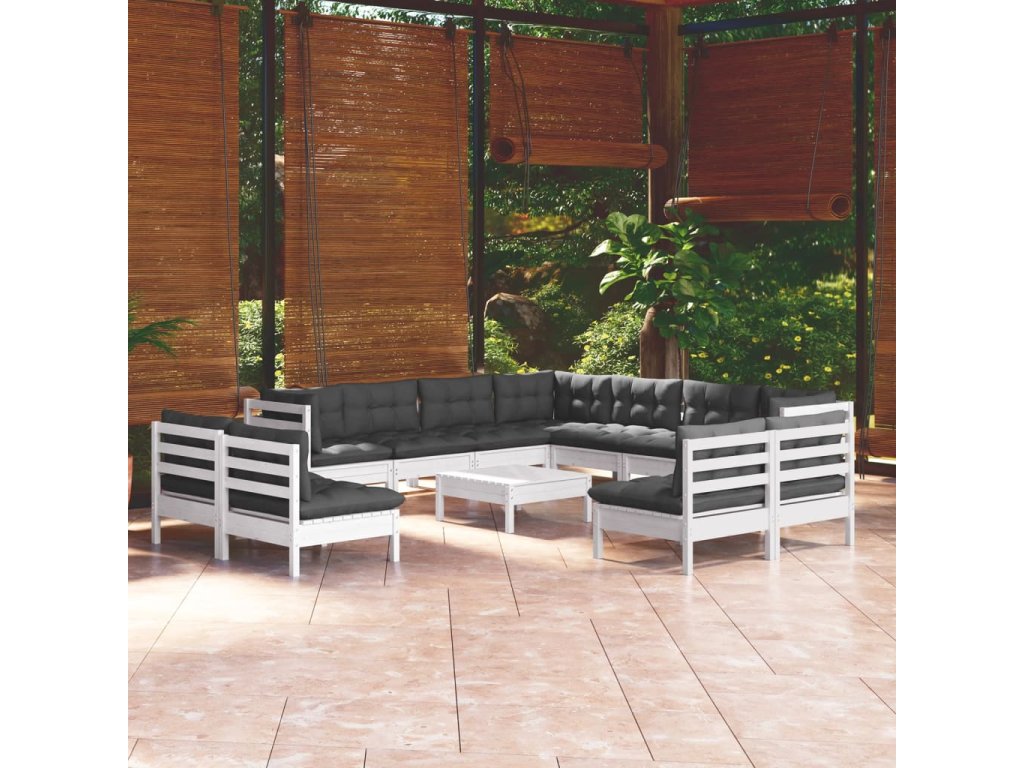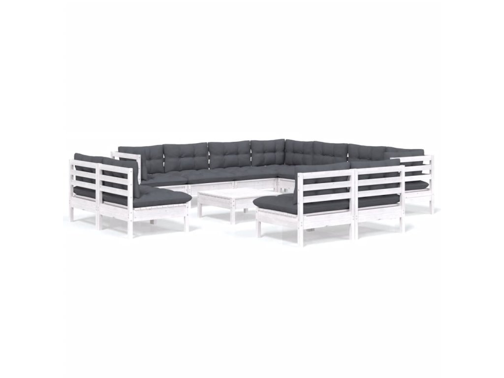 12dílná zahradní sedací souprava podušky bílá masivní borovice 3096870