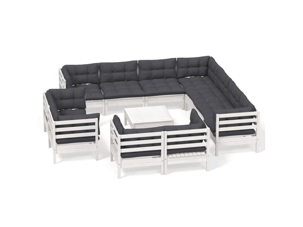 12dílná zahradní sedací souprava podušky bílá masivní borovice 3096942