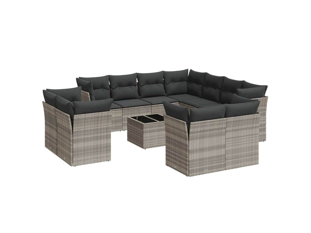 12dílná zahradní sedací souprava podušky světle šedá polyratan 3218522