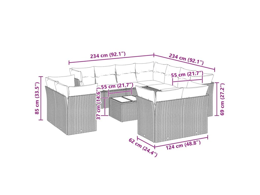Tato zahradní sedací souprava je dokonalým doplňkem vaší zahrady, terasy nebo dvorku a poskytne vám pohodlné a příjemné místo, kde si můžete povídat s rodinou a přáteli nebo jen tak odpočívat a užívat si pobyt venku.