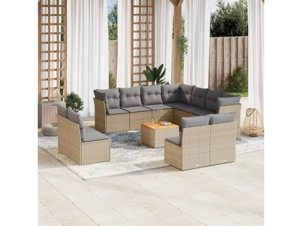 12dílná zahradní sedací souprava s poduškami béžová polyratan 3223707