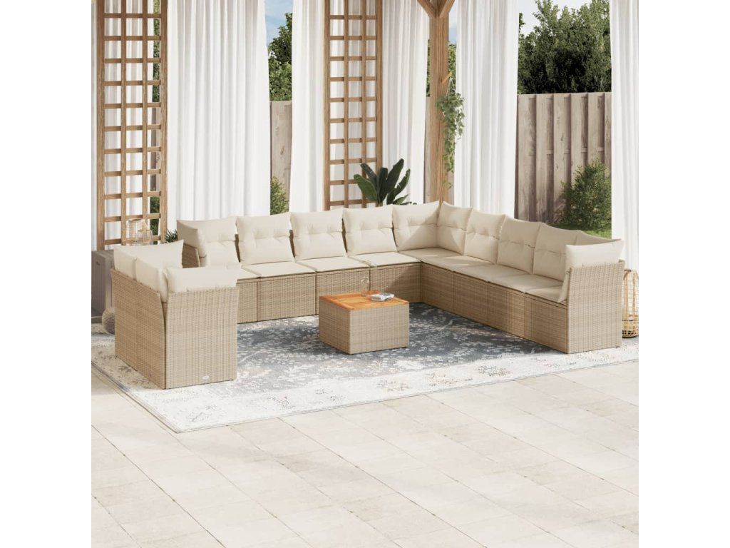 12dílná zahradní sedací souprava s poduškami béžová polyratan 3223727