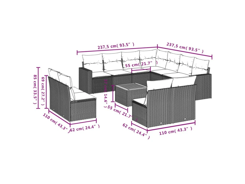 Tato zahradní sedací souprava je dokonalým doplňkem vaší zahrady, terasy nebo dvorku a poskytne vám pohodlné a příjemné místo, kde si můžete povídat s rodinou a přáteli nebo jen tak odpočívat a užívat si pobyt venku.