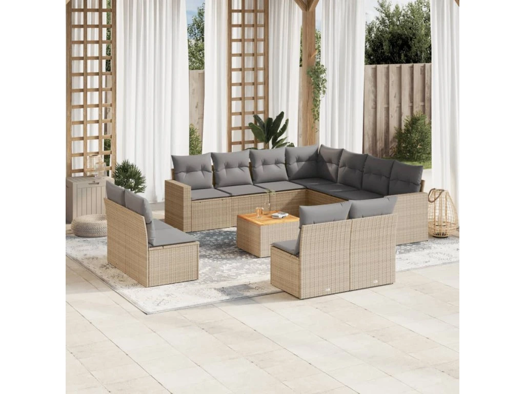 12dílná zahradní sedací souprava s poduškami béžová polyratan 3224183