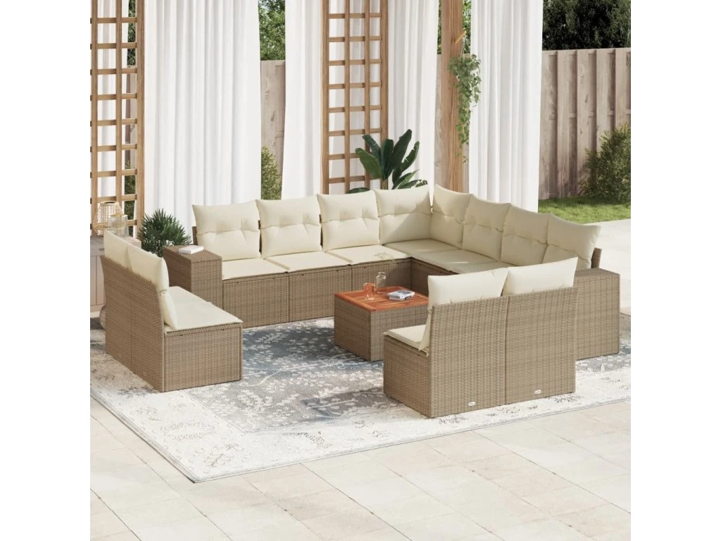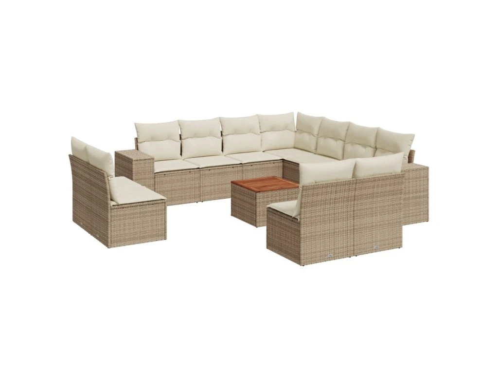 12dílná zahradní sedací souprava s poduškami béžová polyratan 3225505