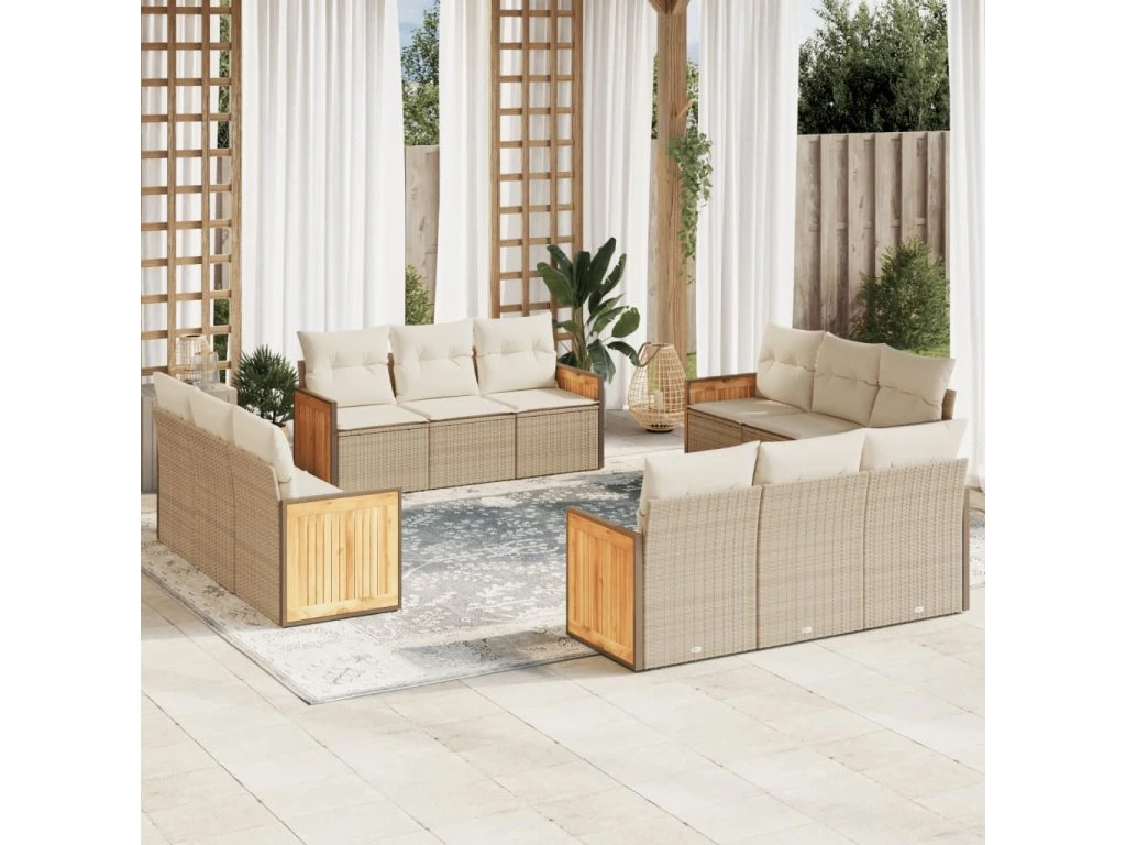 12dílná zahradní sedací souprava s poduškami béžová polyratan 3227514