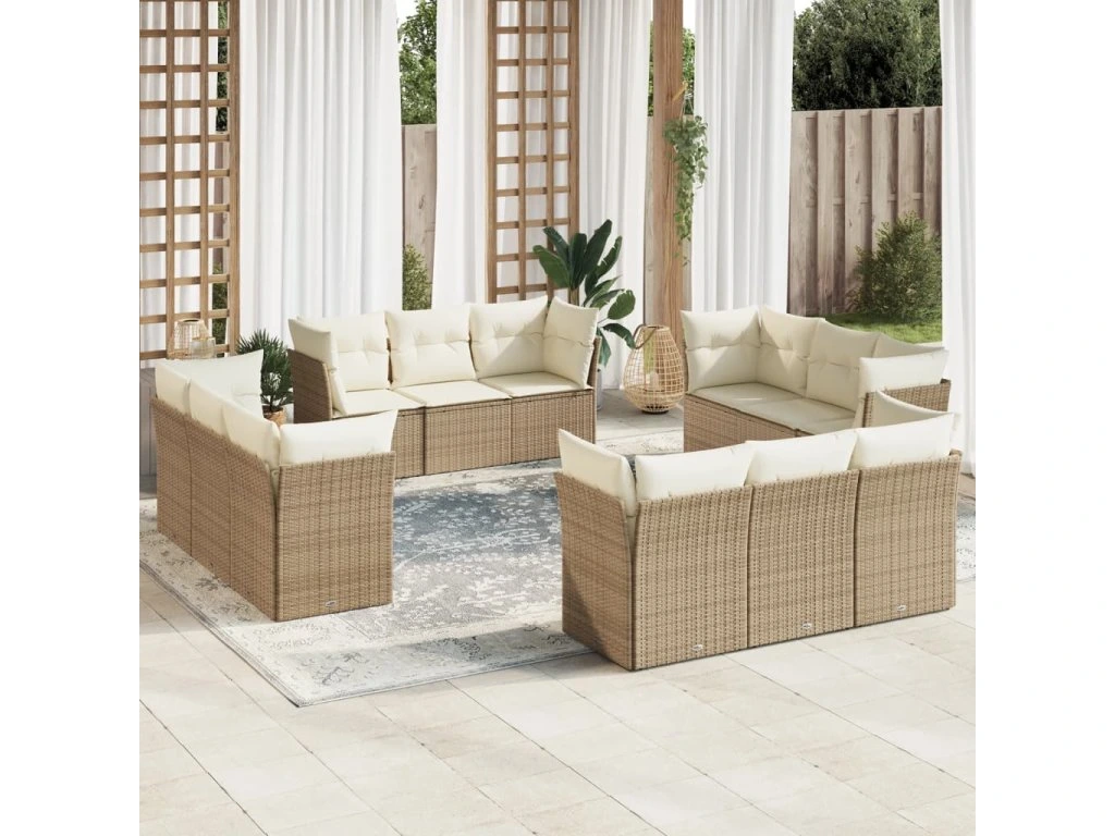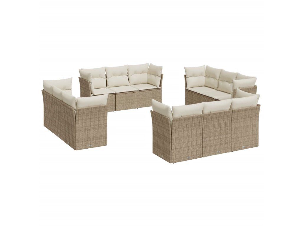 12dílná zahradní sedací souprava s poduškami béžová polyratan 3249167