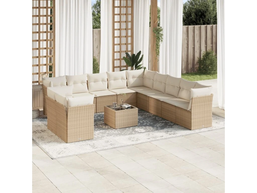12dílná zahradní sedací souprava s poduškami béžová polyratan 3249727