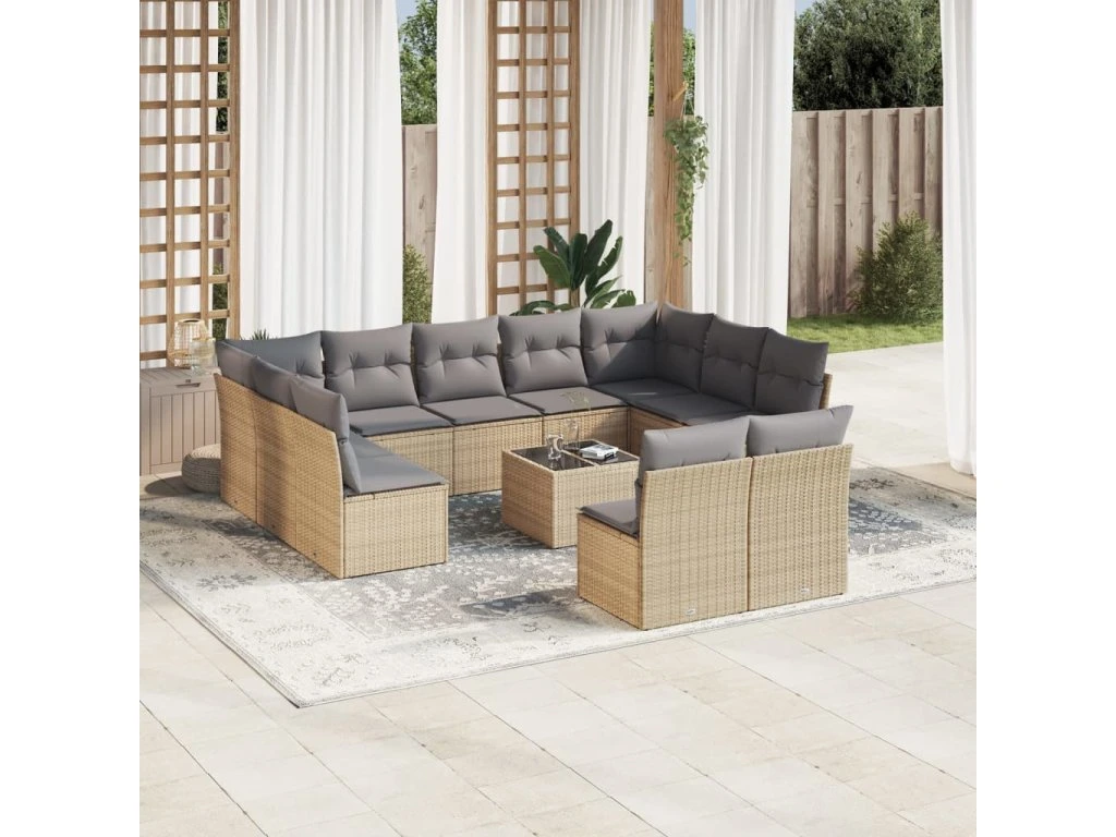 12dílná zahradní sedací souprava s poduškami béžová polyratan 3250198