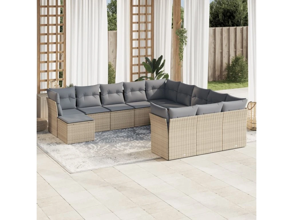 12dílná zahradní sedací souprava s poduškami béžová polyratan 3250468