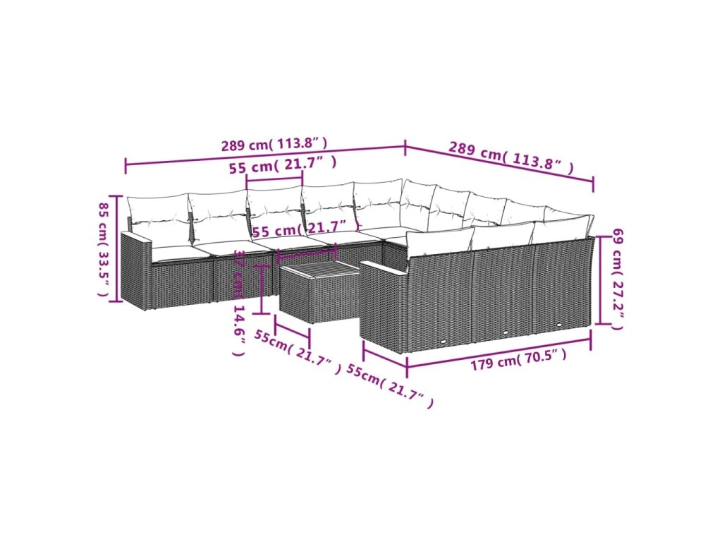 Tato zahradní sedací souprava je dokonalým doplňkem vaší zahrady, terasy nebo dvorku a poskytne vám pohodlné a příjemné místo, kde si můžete povídat s rodinou a přáteli nebo jen tak odpočívat a užívat si pobyt venku.