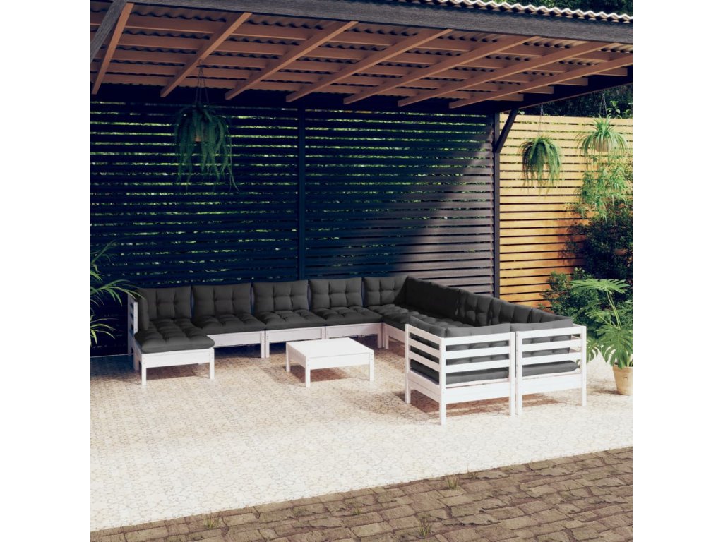 12dílná zahradní sedací souprava s poduškami bílá borovice 3097062