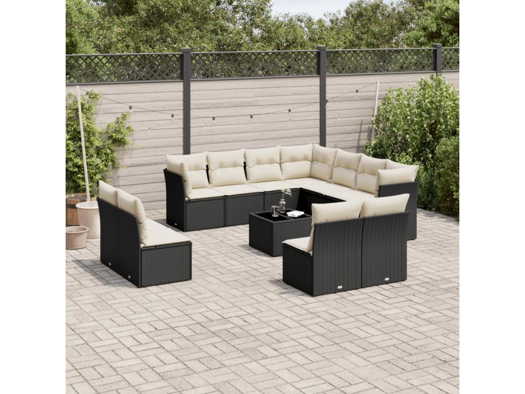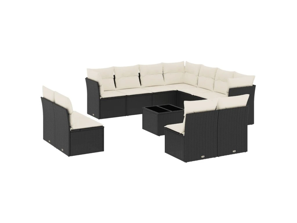 12dílná zahradní sedací souprava s poduškami černá polyratan 3217826