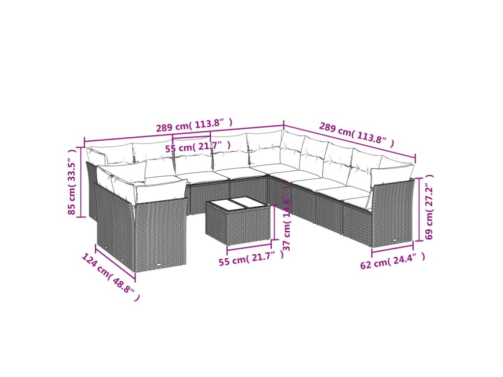 12dílná zahradní sedací souprava s poduškami černá polyratan 3217885