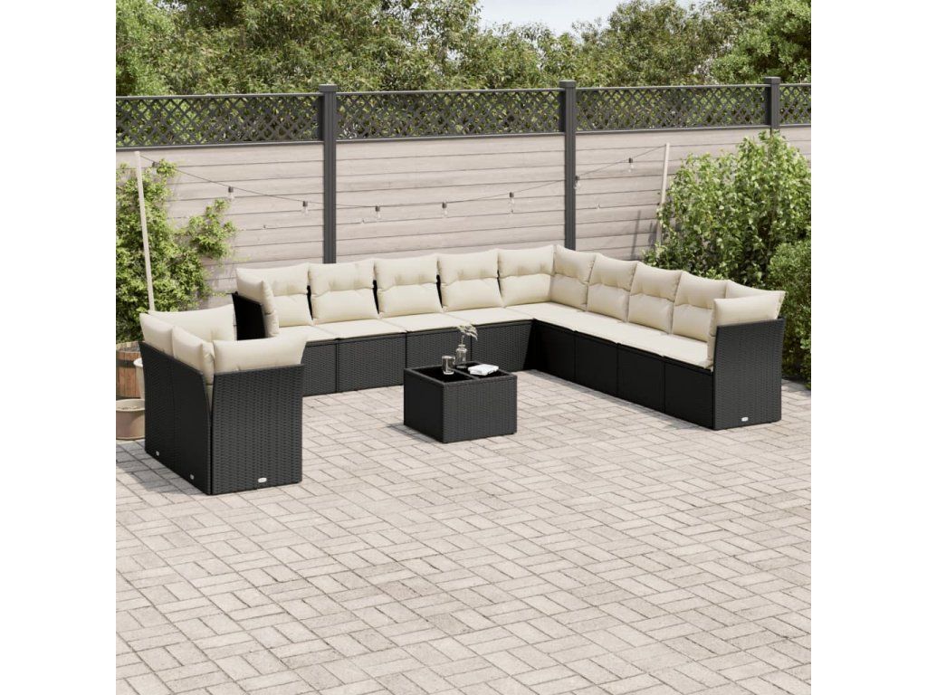 12dílná zahradní sedací souprava s poduškami černá polyratan 3217886