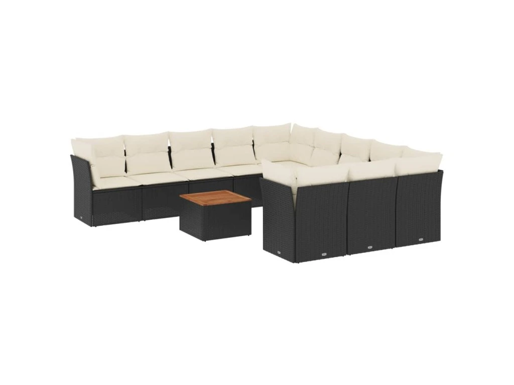 12dílná zahradní sedací souprava s poduškami černá polyratan 3223907