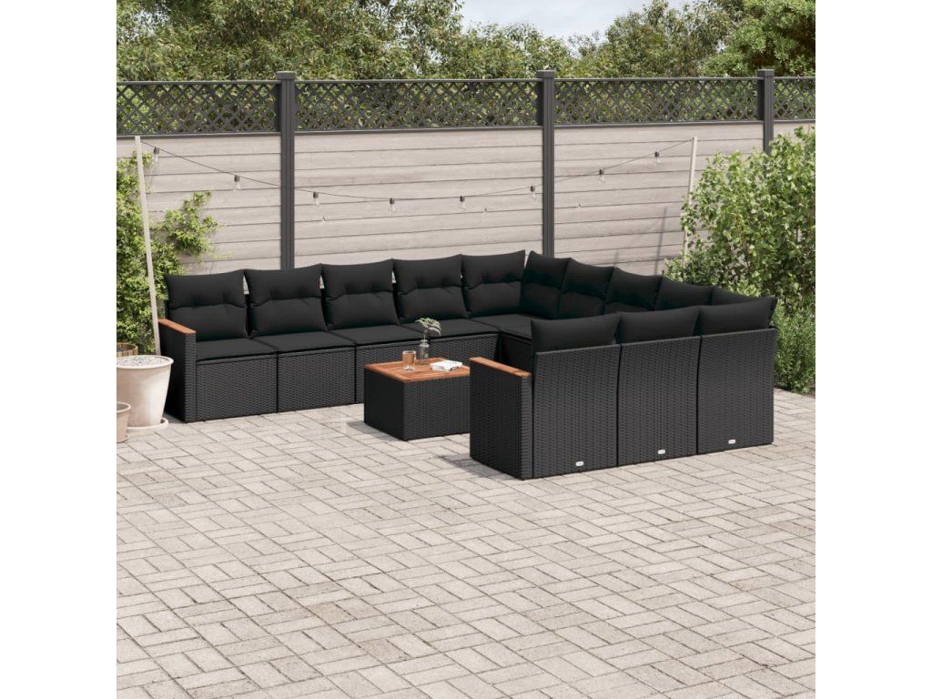 12dílná zahradní sedací souprava s poduškami černá polyratan 3226433