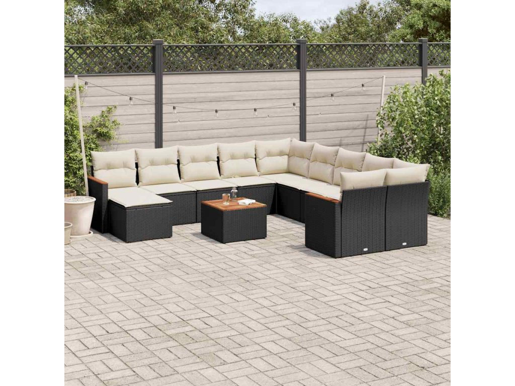 12dílná zahradní sedací souprava s poduškami černá polyratan 3226574