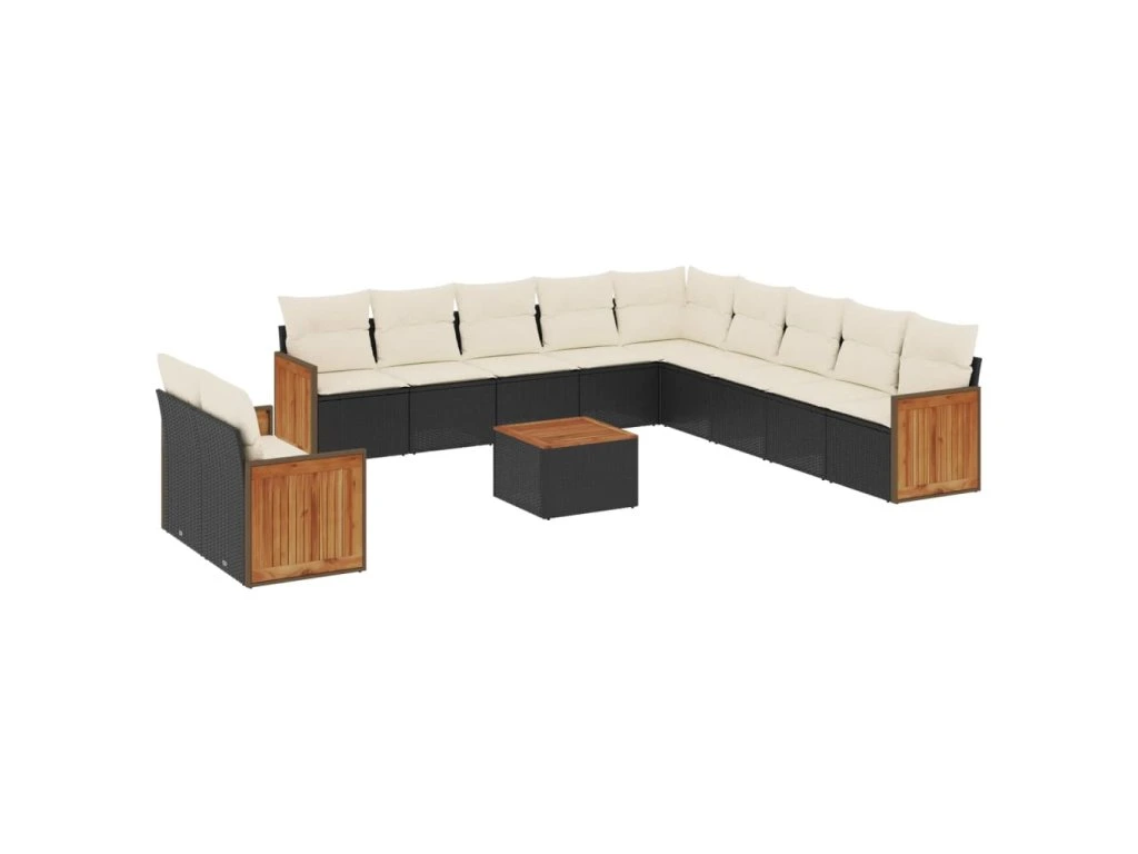 12dílná zahradní sedací souprava s poduškami černá polyratan 3227813