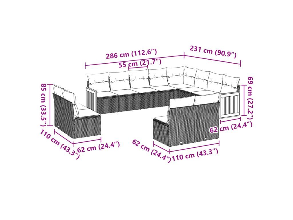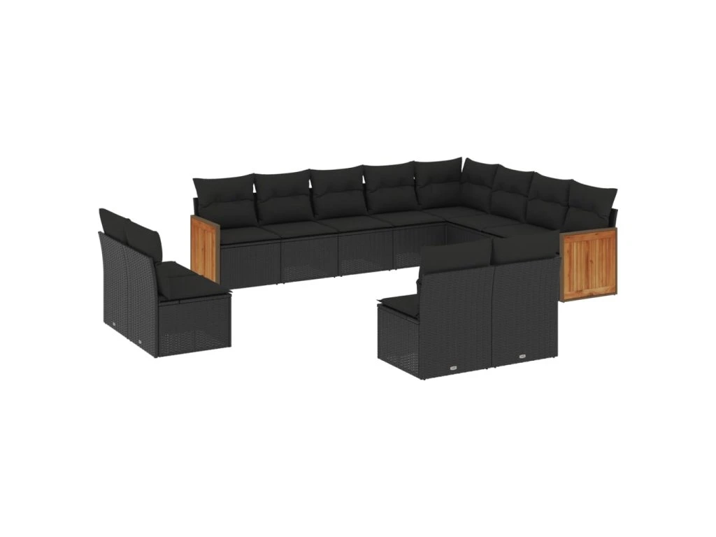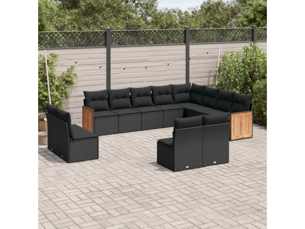 12dílná zahradní sedací souprava s poduškami černá polyratan 3228148