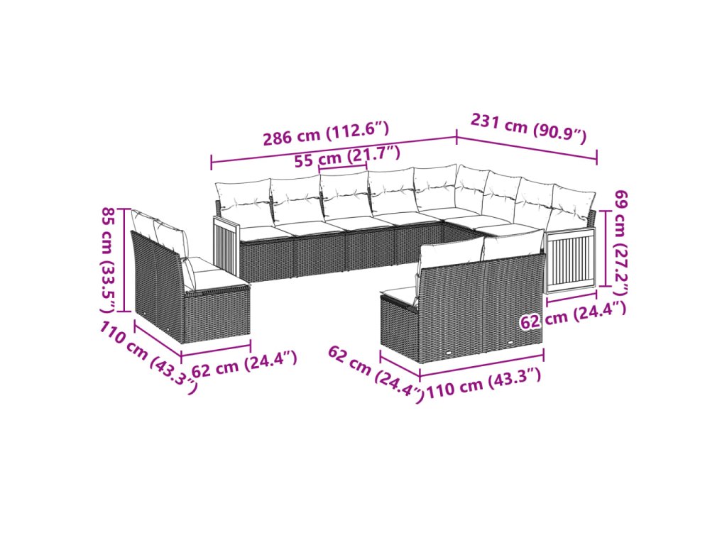 - Modulární design: Tato sada venkovního nábytku se vyznačuje modulární konstrukcí, je tedy zcela flexibilní a lze ji snadno přemisťovat, takže si můžete uspořádat venkovní nábytek dle vašich potřeb.