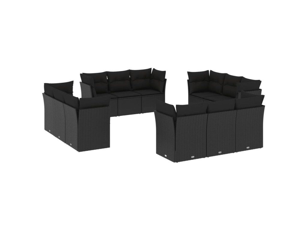12dílná zahradní sedací souprava s poduškami černá polyratan 3249164