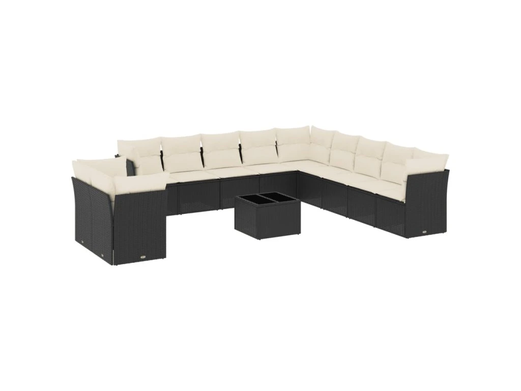 12dílná zahradní sedací souprava s poduškami černá polyratan 3249725