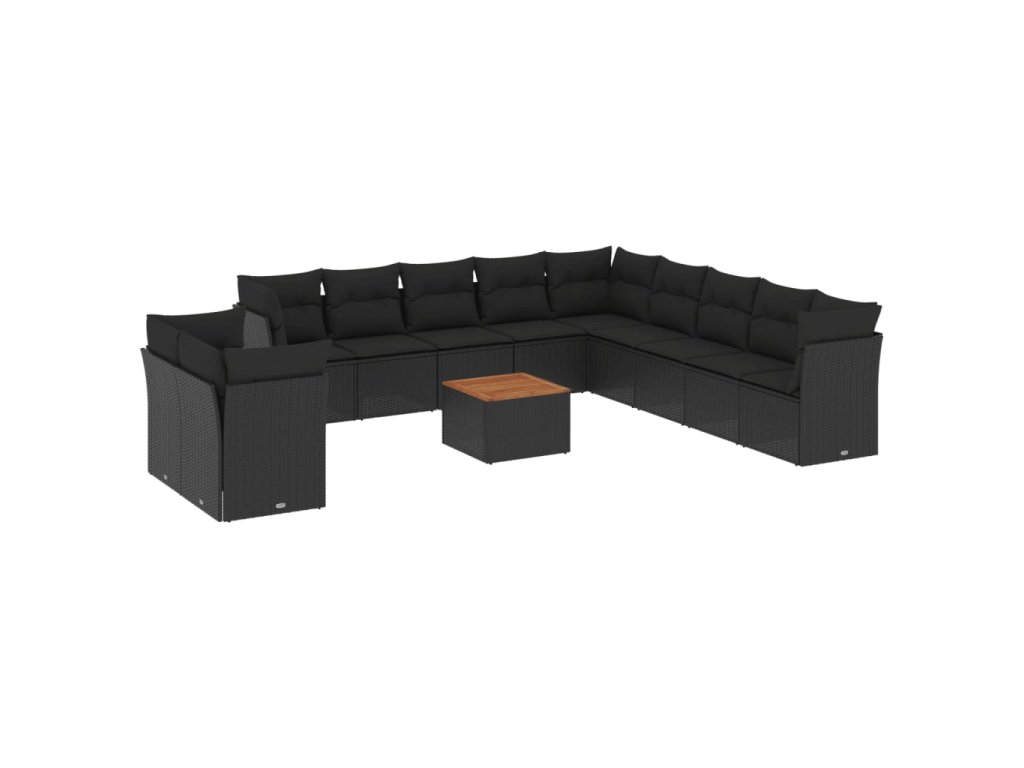 12dílná zahradní sedací souprava s poduškami černá polyratan 3256055
