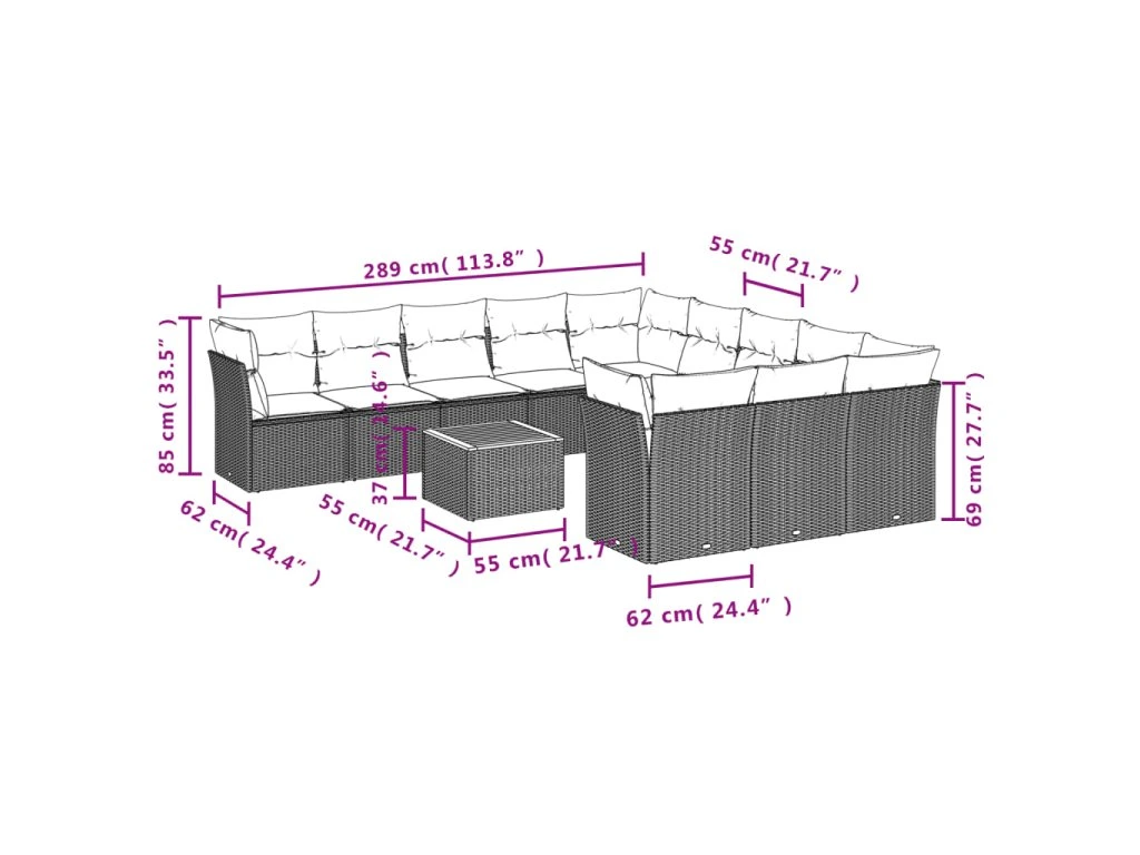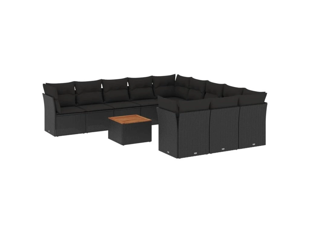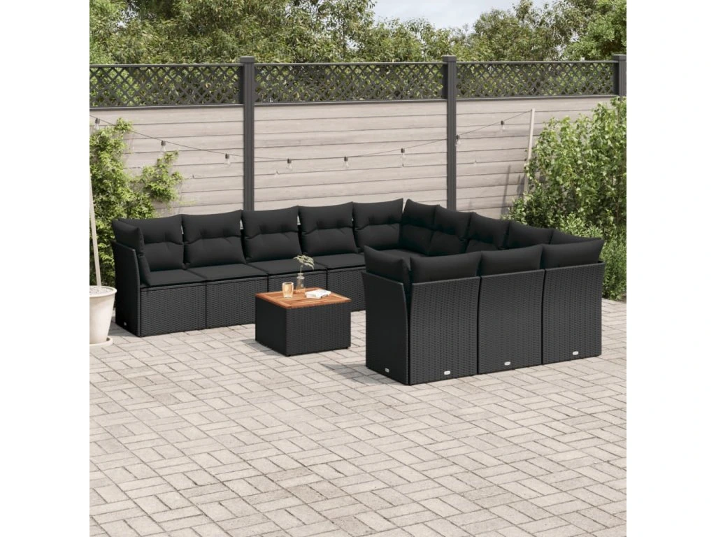 12dílná zahradní sedací souprava s poduškami černá polyratan 3256237