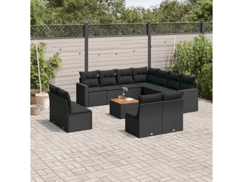12dílná zahradní sedací souprava s poduškami černá polyratan 3256510