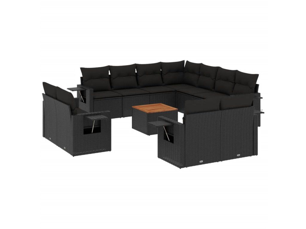 12dílná zahradní sedací souprava s poduškami černá polyratan 3257154