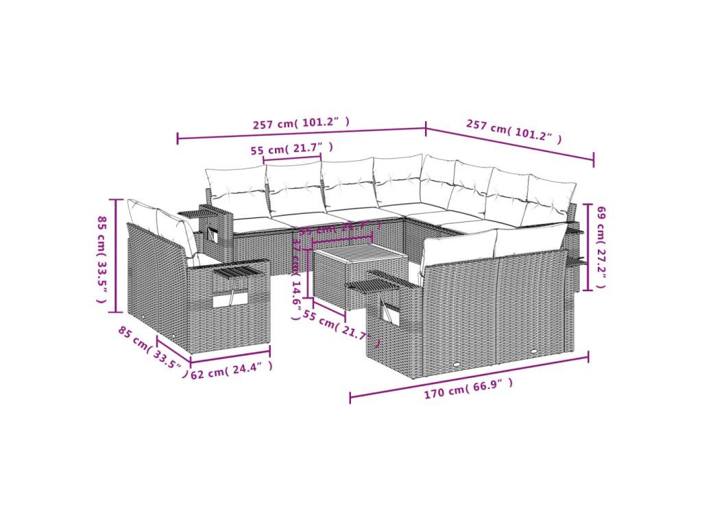 Tato zahradní sedací souprava je dokonalým doplňkem vaší zahrady, terasy nebo dvorku a poskytne vám pohodlné a příjemné místo, kde si můžete povídat s rodinou a přáteli nebo jen tak odpočívat a užívat si pobyt venku.