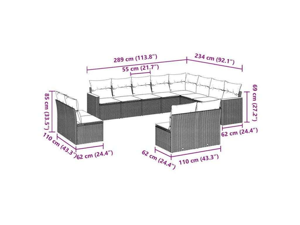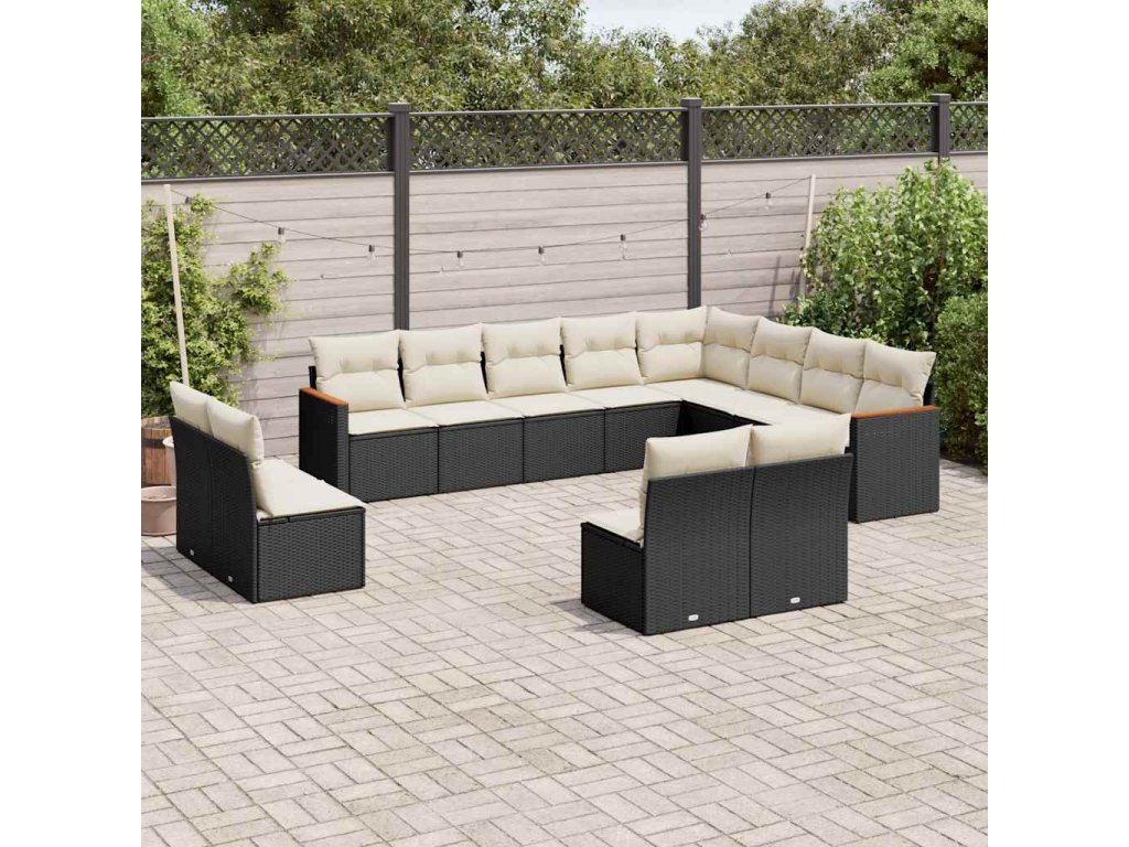 12dílná zahradní sedací souprava s poduškami černá polyratan 3258871