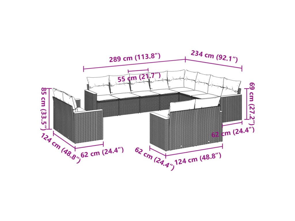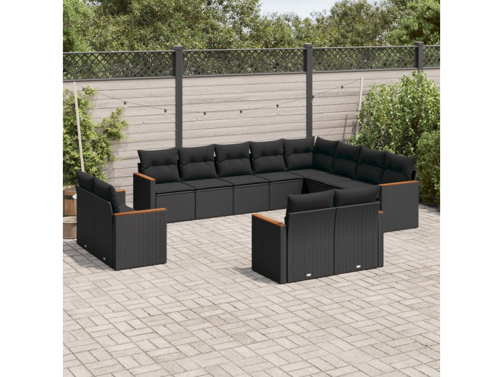 12dílná zahradní sedací souprava s poduškami černá polyratan 3258912