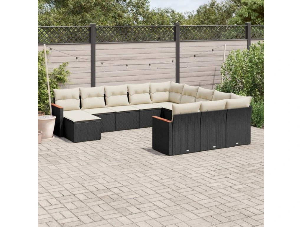 12dílná zahradní sedací souprava s poduškami černá polyratan 3258983
