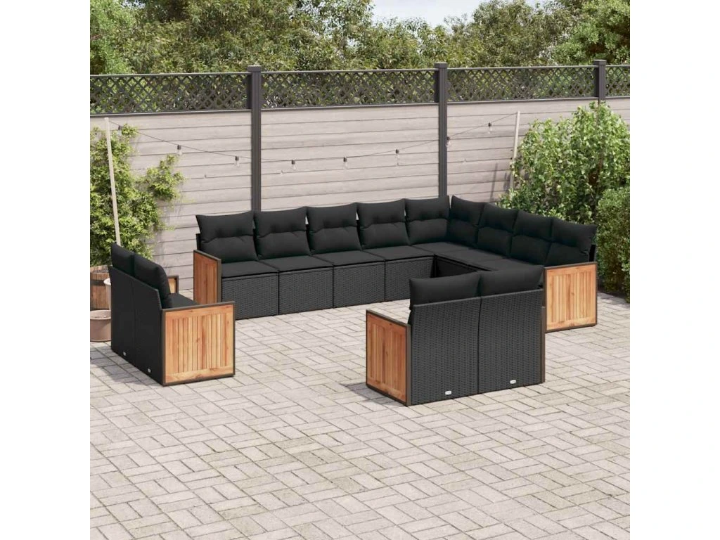 12dílná zahradní sedací souprava s poduškami černá polyratan 3260592