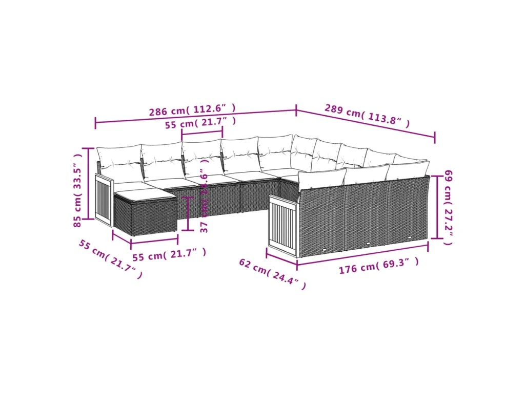Tato zahradní sedací souprava je dokonalým doplňkem vaší zahrady, terasy nebo dvorku a poskytne vám pohodlné a příjemné místo, kde si můžete povídat s rodinou a přáteli nebo jen tak odpočívat a užívat si pobyt venku.