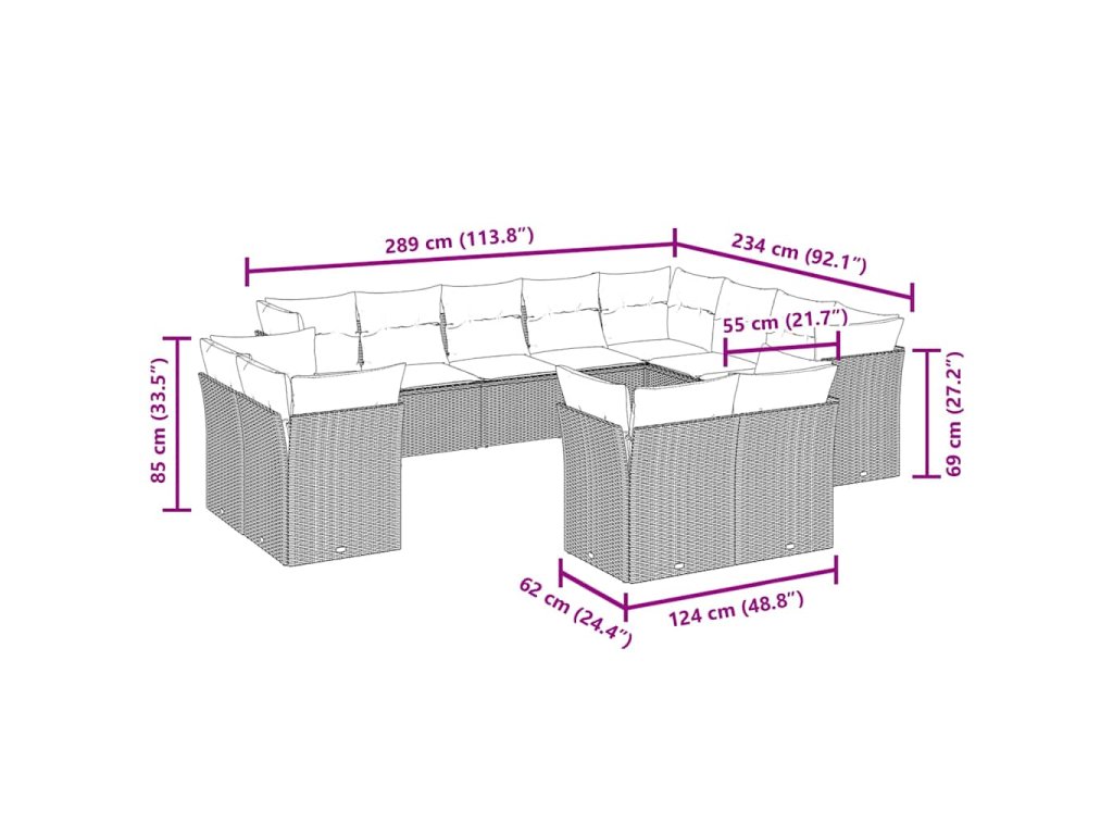 12dílná zahradní sedací souprava s poduškami hnědá polyratan 3218533