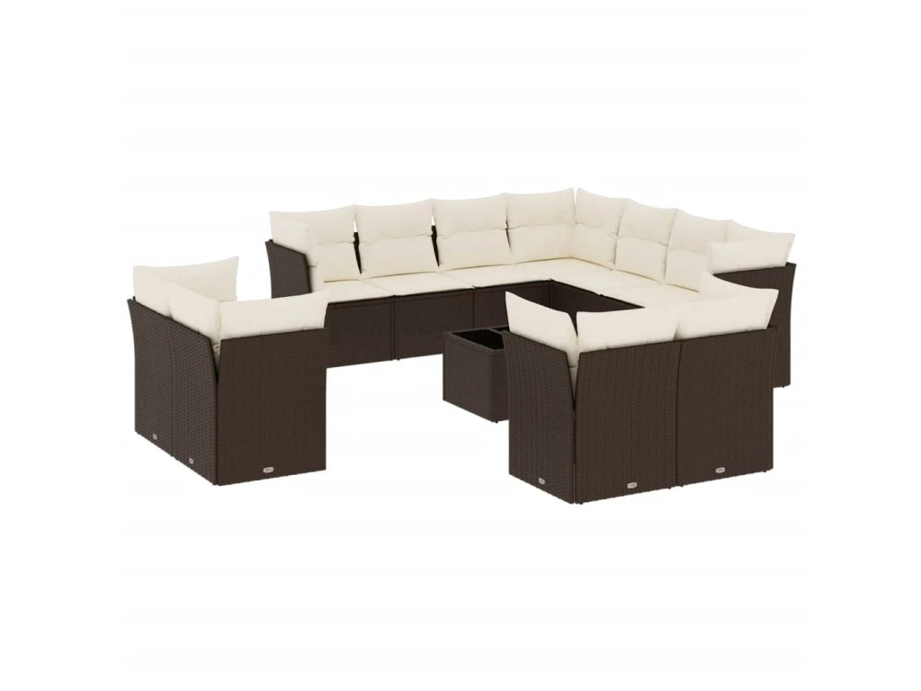12dílná zahradní sedací souprava s poduškami hnědá polyratan 3250362