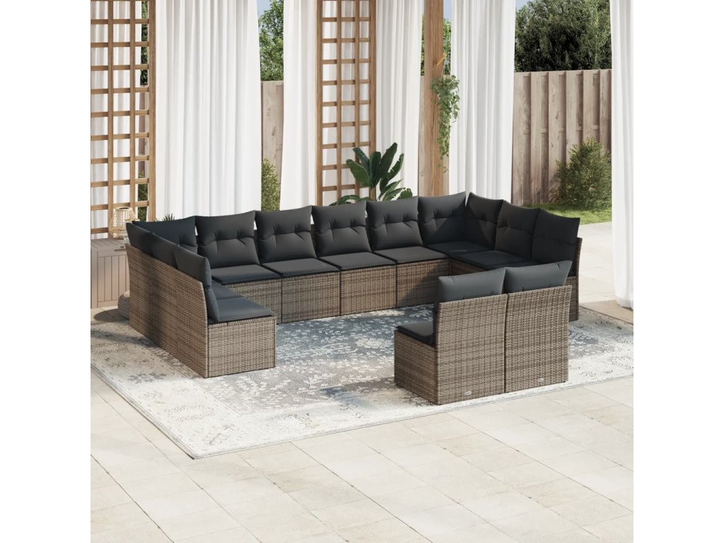 12dílná zahradní sedací souprava s poduškami šedá polyratan 3218370