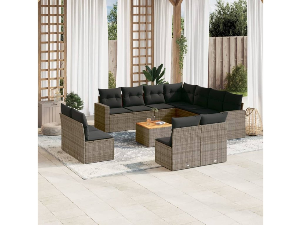 12dílná zahradní sedací souprava s poduškami šedá polyratan 3224184