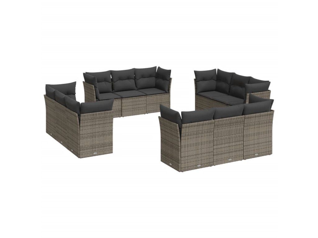 12dílná zahradní sedací souprava s poduškami šedá polyratan 3249169